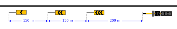 Las pantallas FI6A, FI6B y FI6C se instalarán delante de las señales avanzadas a las distancias indicadas. No se instalarán delante de señales