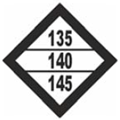 Cuadrada; fondo color naranja; franja e inscripciones en color negro |