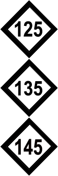 Una reducción de velocidad máxima se señalizará en la vía con 2 o 3 señales consecutivas: preanuncio de velocidad máxima (FVM3A) (solo en