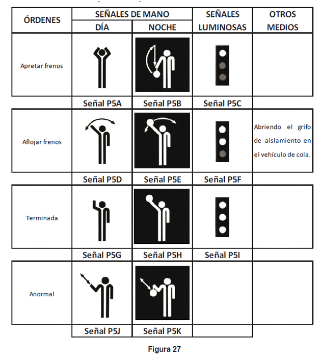 La señal de mano o luminosa de aflojar frenos, sólo se utilizará en la prueba de verificación de