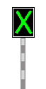 Con luz verde a destellos (FF10D): circular con precaución hasta el PN o grupo de PN, cruzarlo si es posible, e informar de esta circunstancia por radiotelefonía al Responsable de Circulación del PM, o en ausencia de radiotelefonía, al Responsable de Circulación de la primera estación donde efectúe parada.