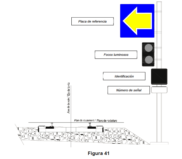 La disposición de los diferentes elementos que conforman una señal y su distribución en el soporte, se realiza de acuerdo con la representación de la siguiente figura: